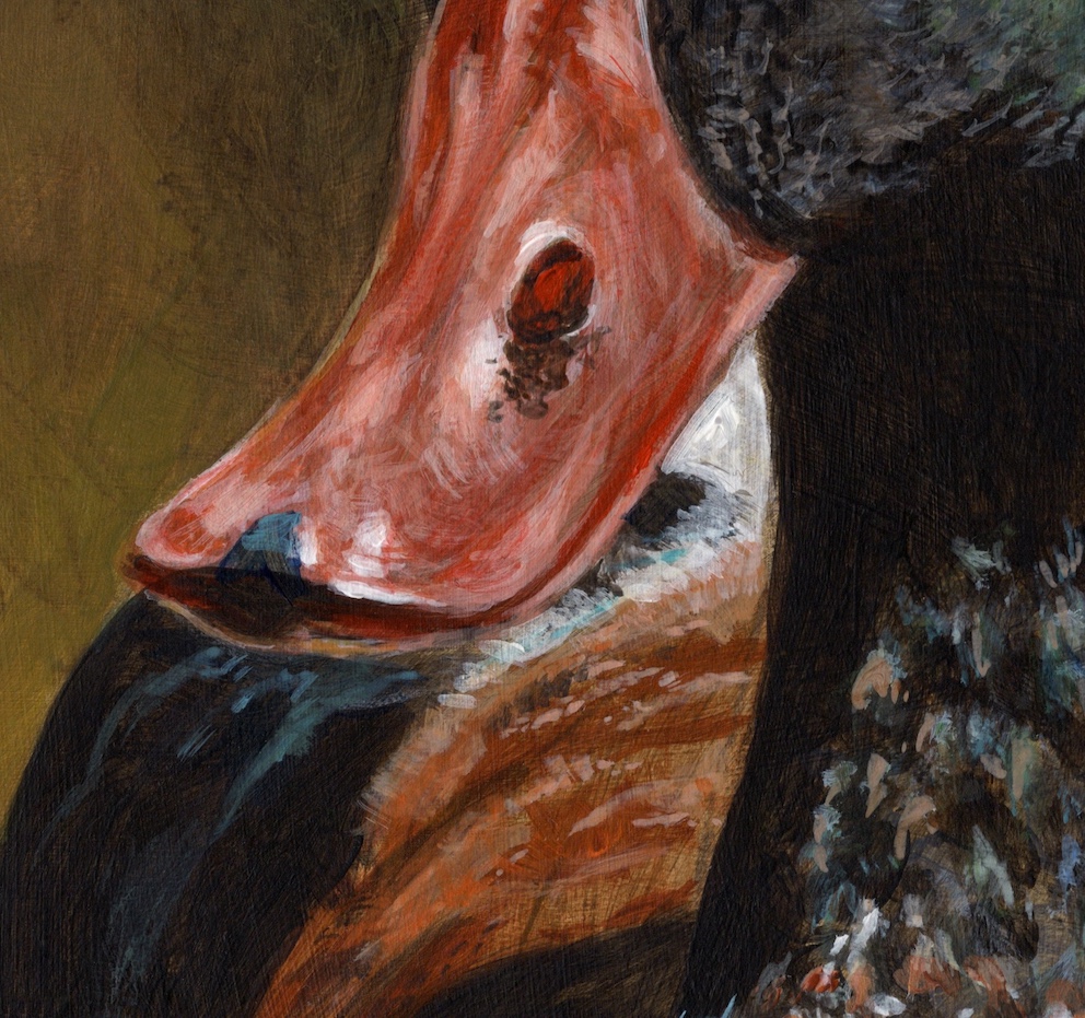 Common Shelducks have just such wonderful colors. Their bright red beaks match nicely with the warm brown, green and bright white feathers. Males and females look quite alike. but where the male had a red knob on top of its beak, the female does not. This is a female.